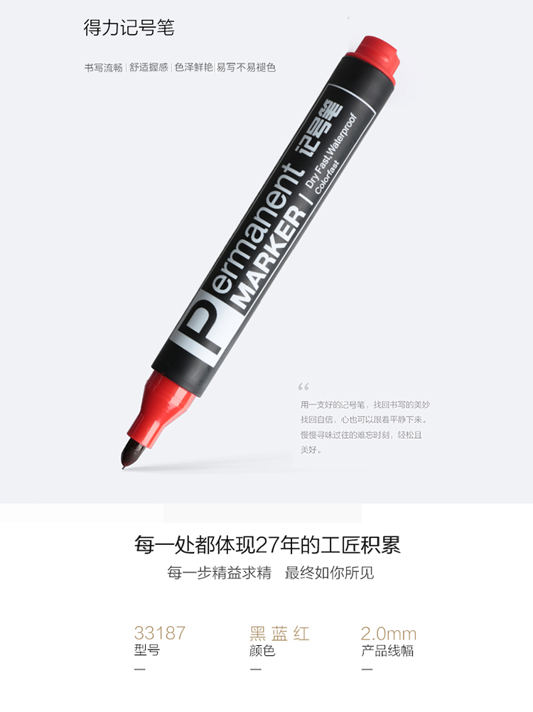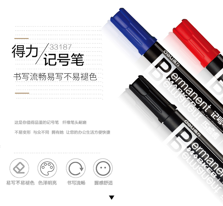 得力(deli)油性粗头记号笔物流黑色大头笔 签名笔马...