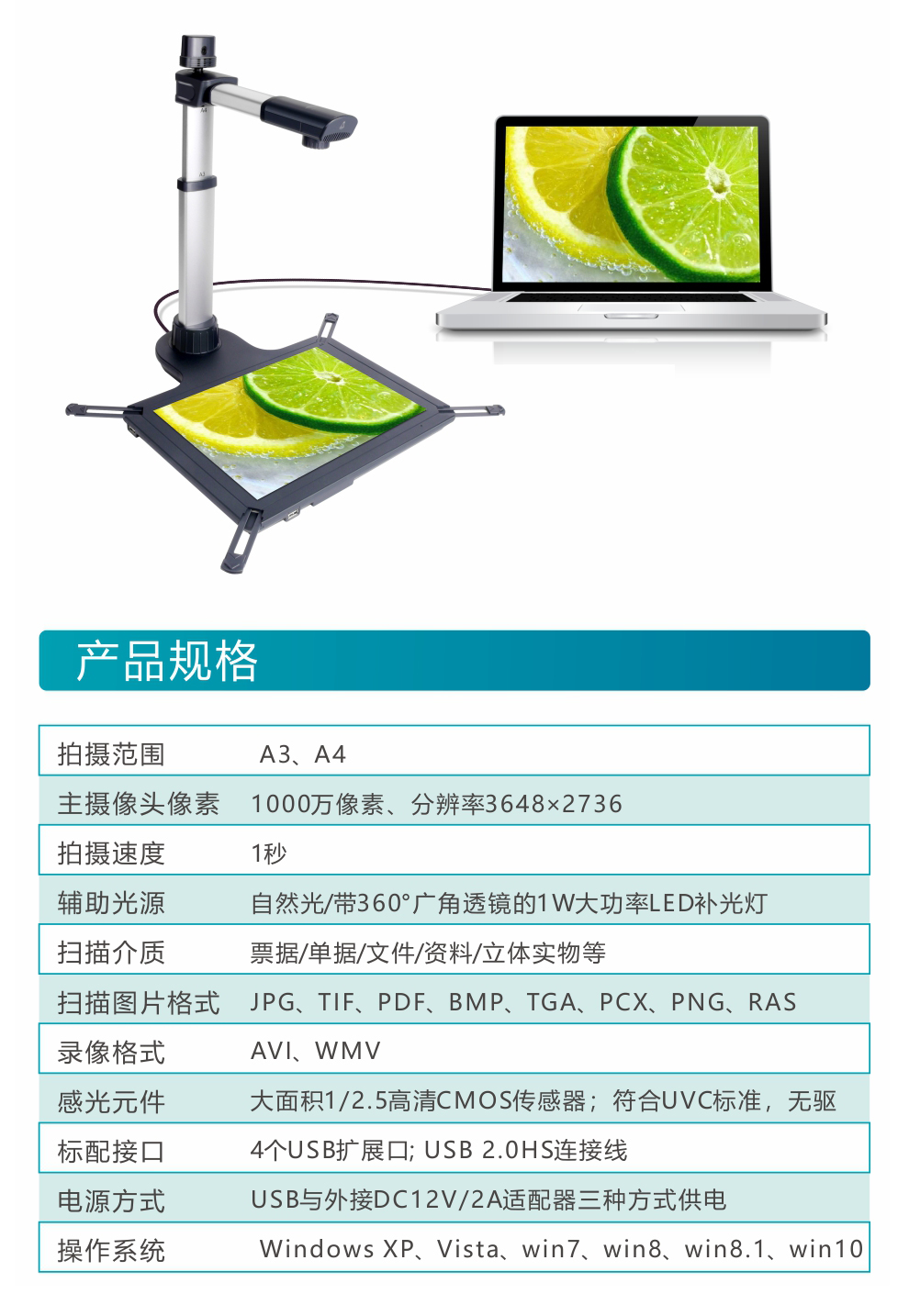 得力15165高拍仪(黑色)(单位:台)