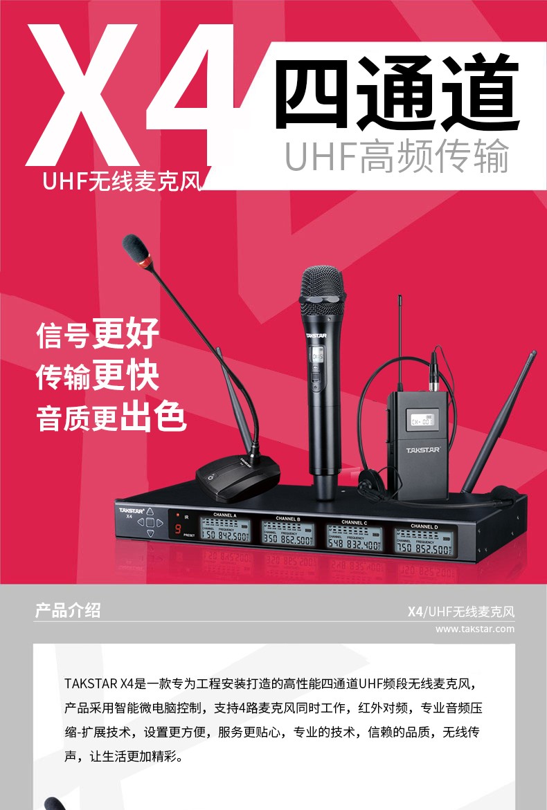 Takstar/得胜 X6专业U段无线一拖二手持话筒(...