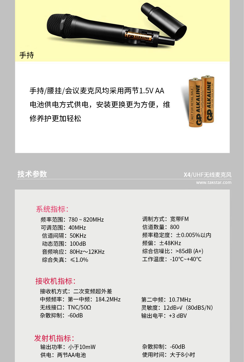 得胜X4-TL-UHF无线麦克风会议发射器腰挂(单位:...