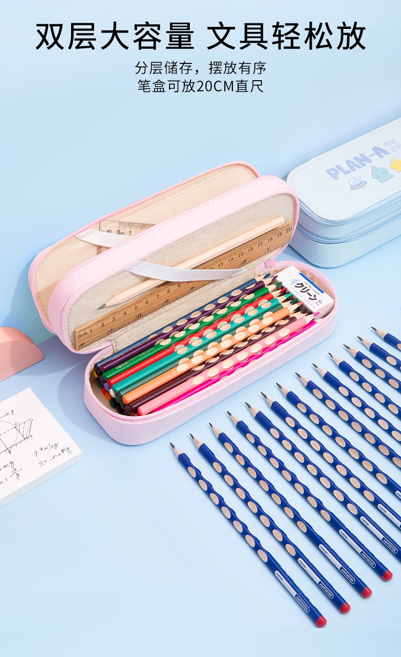 晨光(M&G)文具蓝色大容量笔袋 三层防水文...